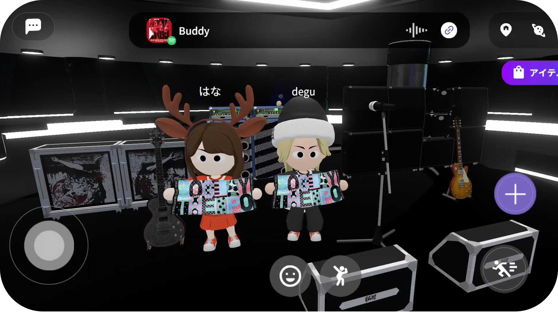 チャットやアバターのアクションにて、GLAYの楽曲をファンの皆様で楽しみましょう♫